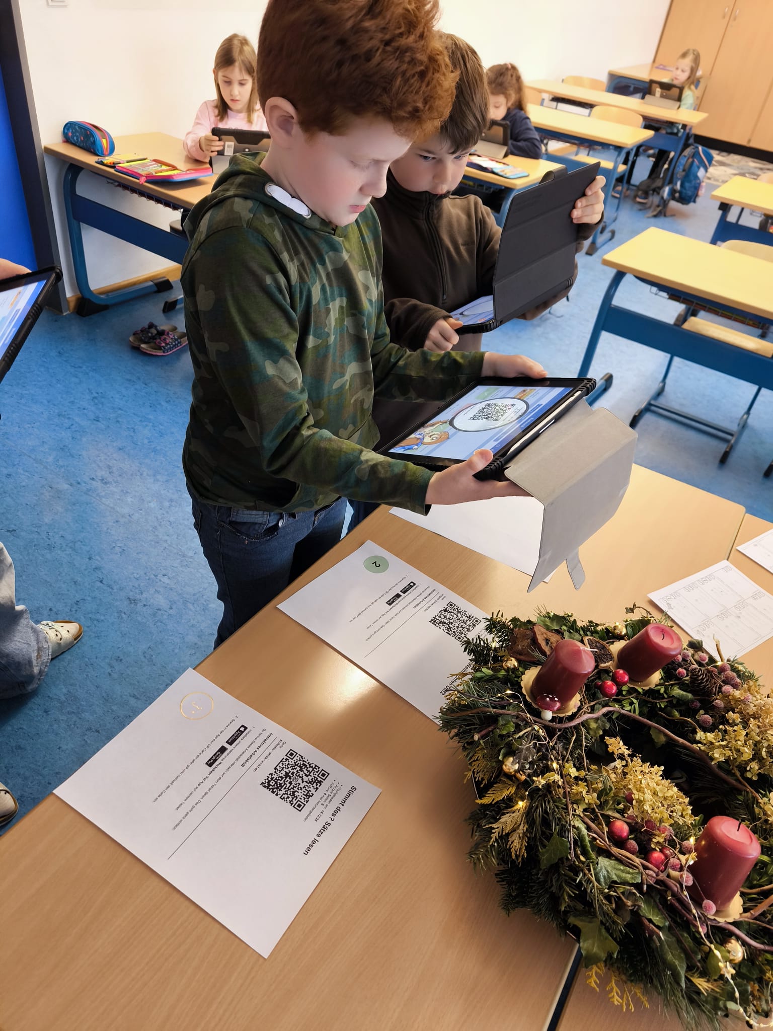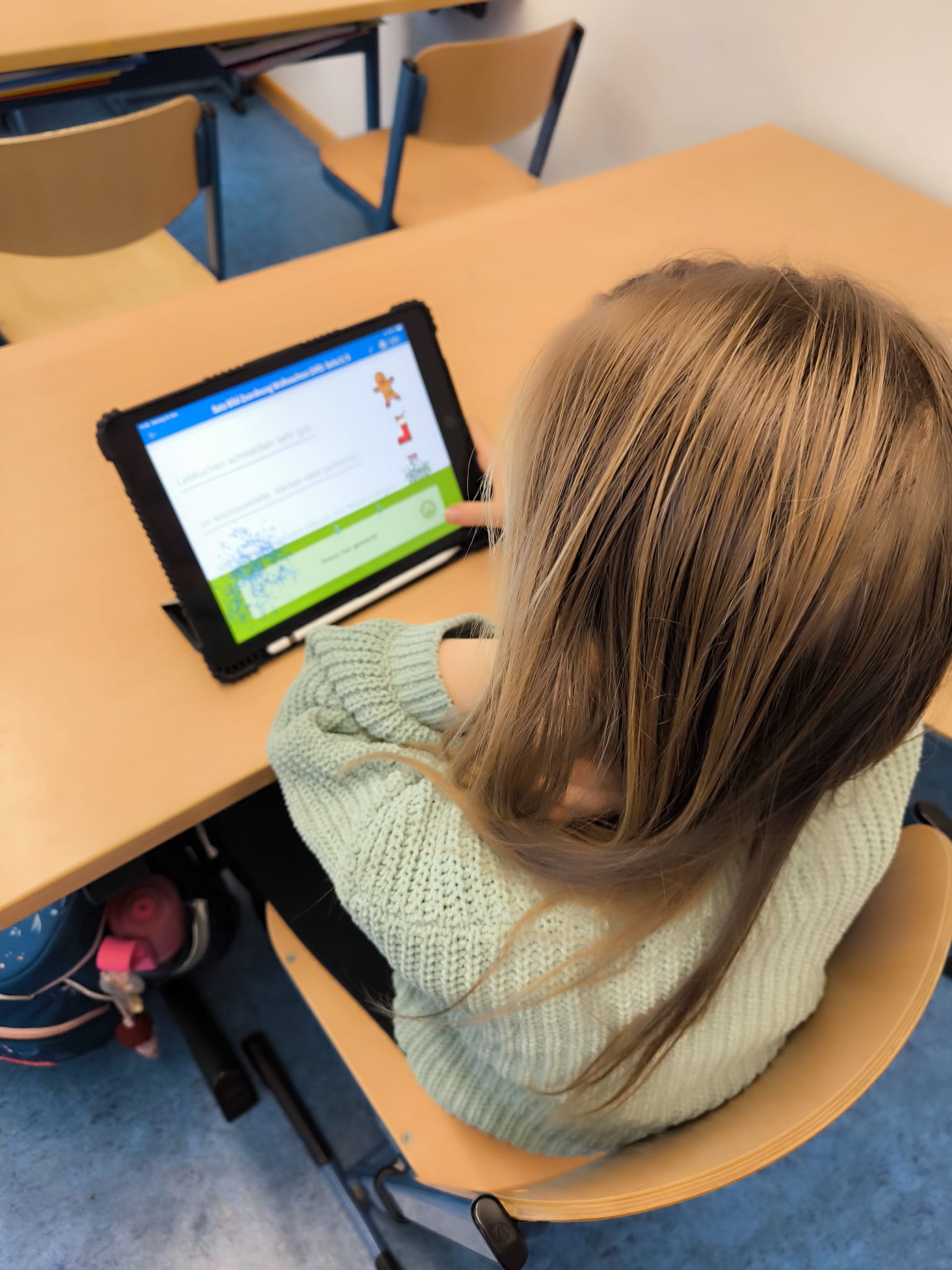In der letzten Stunde vor den Ferien arbeitete die Lese-AG der zweiten Klassen mit Tablets. Dabei nutzten die Schülerinnen und Schüler digitale Medien zur Auseinandersetzung mit altersgerechten Lesetexten.