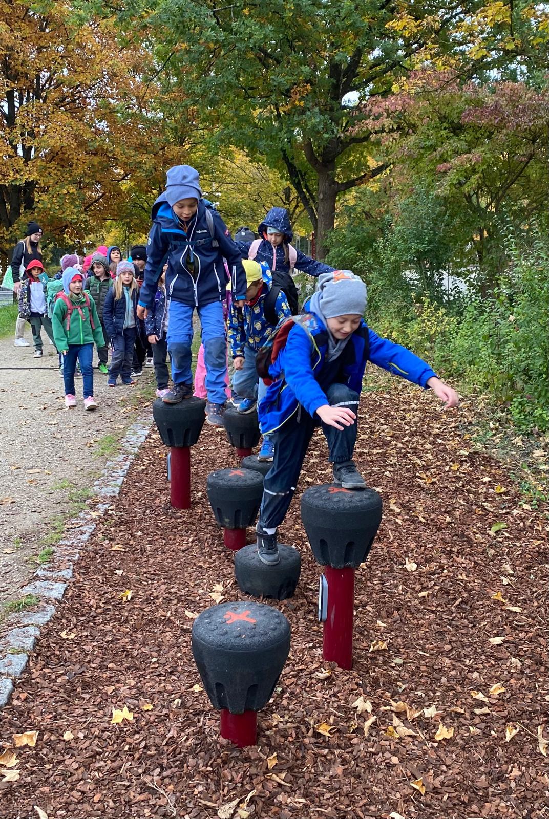 Die Route führte über die Schleuse in Richtung Spielplatz, wo viel Zeit zum Spielen und gemeinsamen Toben blieb. Nach der Bewegung an der frischen Luft kehrten alle gut gelaunt zur Schule zurück